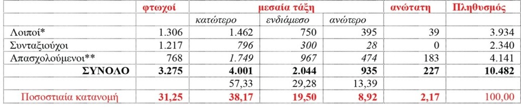 *Οι λοιποί αφορούν το μη εργατικό δυναμικό (πλην συνταξιούχων)  ** βλέπε Πίνακα 2
