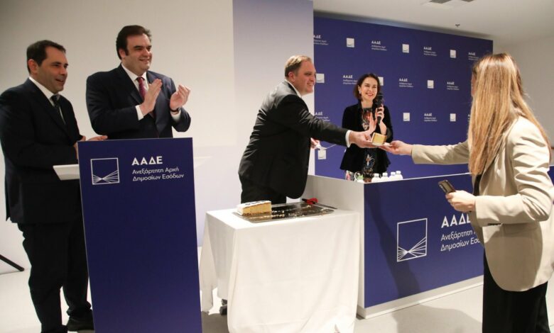 Τον θερμό χαιρετισμό του υπουργού Εθνικής Οικονομίας και Οικονομικών Κυριάκου Πιερρακάκη δέχθηκε η ηγεσία της Ανεξάρτητης Αρχής Δημοσίων Εσόδων κατά την παραδοσιακή κοπή της πρωτοχρονιάτικης πίτας στα γραφεία της ΑΑΔΕ, με τον υπουργό να εξαίρει το “αποτελεσματικό μοντέλο οργάνωσης” της Αρχής, ως “υπόδειγμα για το σύνολο της δημόσιας διοίκησης.»