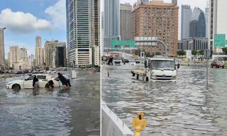Στο εμιράτο της Σάρτζα πλημμύρισε μία από τις βασικές οδικές αρτηρίες και οι περαστικοί κυκλοφορούσαν χωρίς παπούτσια.