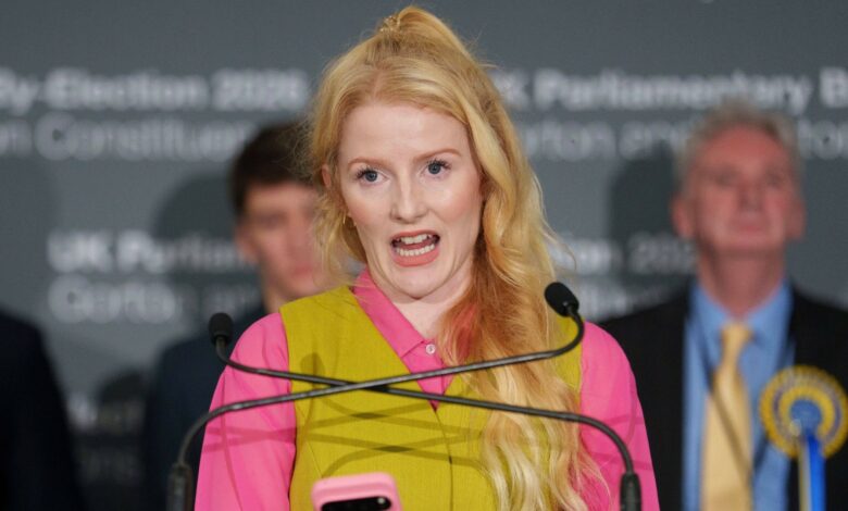 Η Χάνα Σπένσερ, 34χρονη υδραυλικός και μέλος του τοπικού συμβουλίου, κέρδισε την έδρα στο Γκόρτον και το Ντέντον, κοντά στην αγγλική πόλη του Μάντσεστερ, με 14.890 ψήφους, με ποσοστό άνω του 40% του συνόλου των ψήφων. Το Reform UK, το οποίο προηγείται στις περισσότερες εθνικές δημοσκοπήσεις για περισσότερο από ένα χρόνο, ήρθε δεύτερο με 10.578 ψήφους, ενώ οι Εργατικοί βρέθηκαν στην τρίτη θέση, με 9.364 ψήφους – περίπου το 25% του συνόλου.
