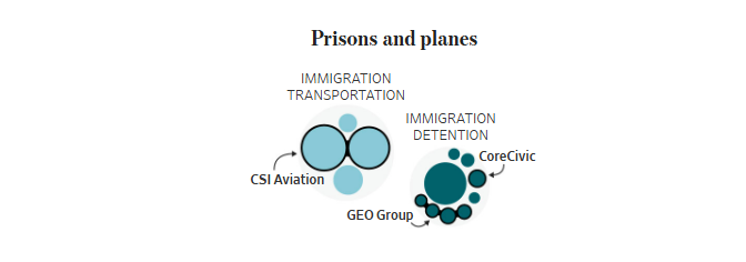 Οι ιδιωτικοί διαχειριστές φυλακών CoreCivic και GEO Group και η αεροπορική εταιρεία απελάσεων CSI Aviation έχουν λάβει σχεδόν 2 δισ. δολάρια από συμβάσεις στη δεύτερη θητεία του Τραμπ.