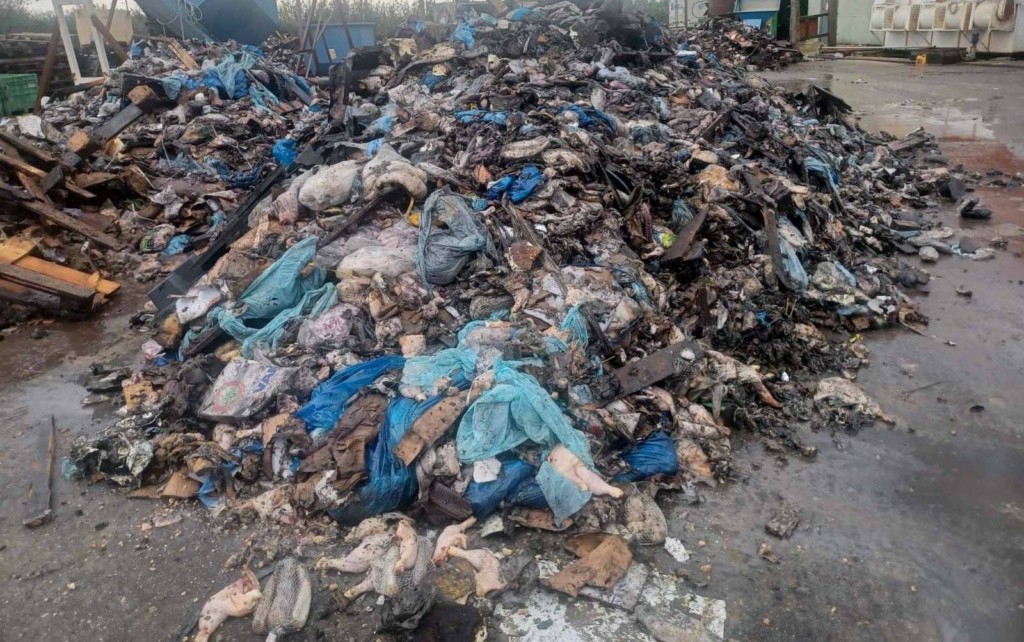 Αξίζει να σημειωθεί ότι η πρόσβαση στο σημείο όπου κατέληξαν τα απόβλητα, ήταν τεχνηέντως αποκλεισμένη με χρήση μηχανήματος έργου, φορτηγού και μεταλλικών εμποδίων. Επίσης, στους στεγασμένους χώρους, υφίστανται δύο μονάδες αδρανοποίησης και μία αποτέφρωσης που δεν λειτουργούσαν κατά την αυτοψία, ενώ βρέθηκαν αποτιθέμενοι σε σωρούς, τουλάχιστον 200 τόνοι, ανάμικτων Ζωικών Υποπροϊόντων (ΖΥΠ), συσκευασμένων – μεταποιημένων τροφίμων ζωικής προέλευσης σε αποσύνθεση, αναμεμιγμένων με Απόβλητα Εκσκαφών Κατασκευών και Κατεδαφίσεων (ΑΕΚΚ) και υλικών συσκευασίας τροφίμων.