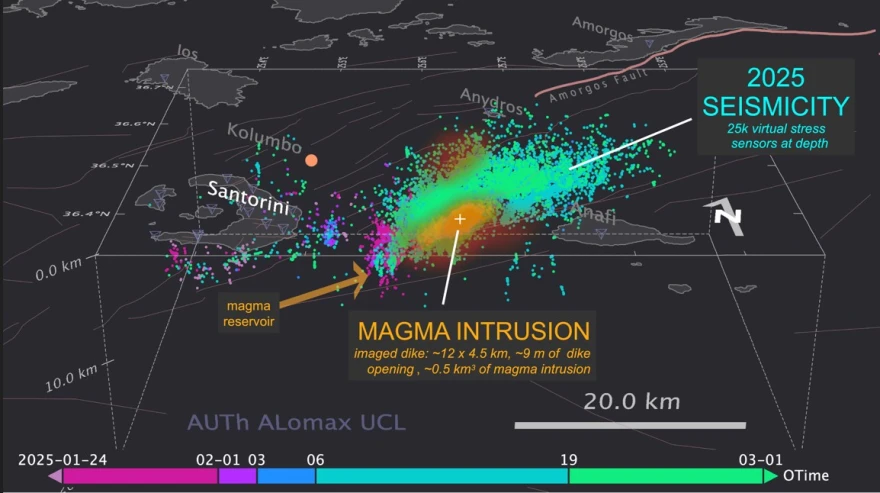 Διεθνής ομάδα ερευνητών, ανάμεσα τους και Έλληνες, αποκάλυψε τις κρυφές διεργασίες που οδήγησαν στην ιδιαίτερα ενεργή σεισμική δραστηριότητα κοντά στη Σαντορίνη στις αρχές του 2025.