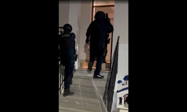 Σε νέο βίντεο που δημοσίευσε η ΕΛΑΣ, διακρίνονται πάνοπλοι αστυνομικοί να πραγματοποιούν έφοδο σε οικία μέλους της συμμορίας, σπάζοντας την πόρτα για να εισέλθουν.