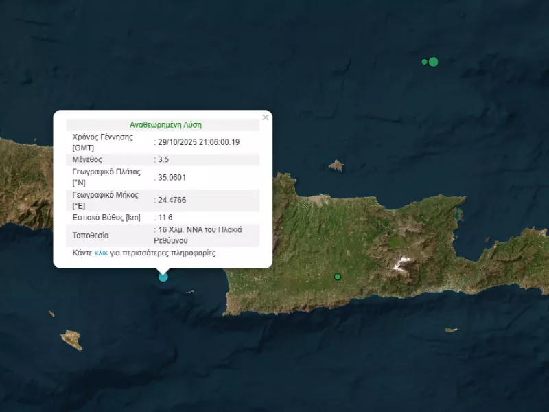 Σεισμός 3,5 Ρίχτερ ανοιχτά του Ρεθύμνου