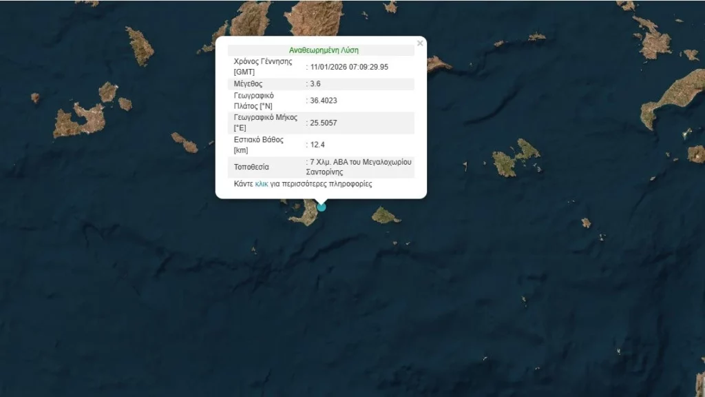 Σεισμός 3,6 Ρίχτερ ανοιχτά της Σαντορίνης