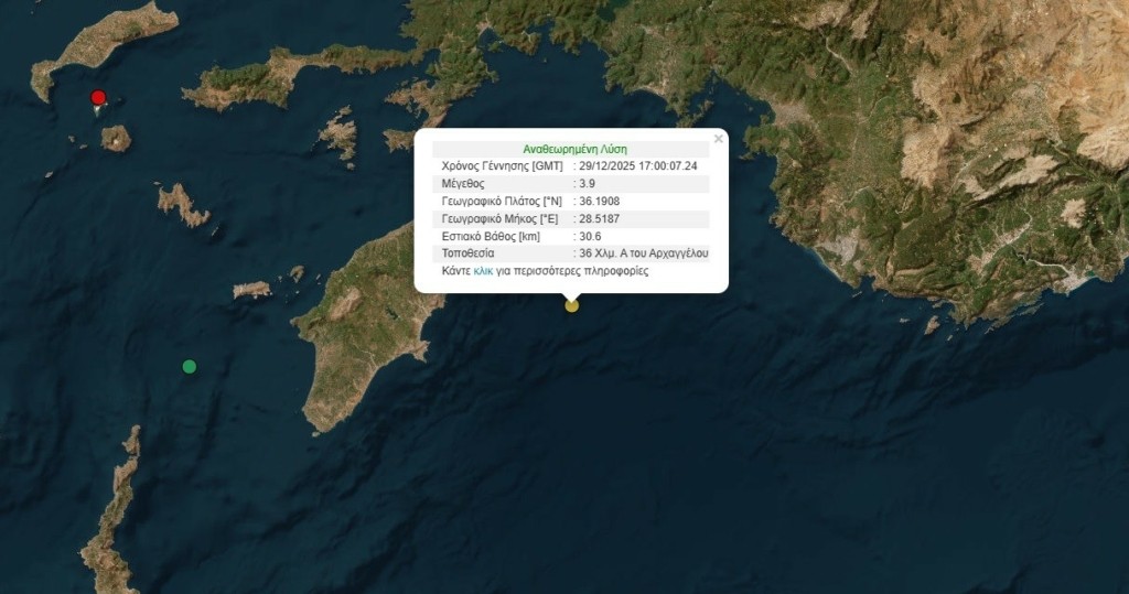 Σεισμός 3,9 Ρίχτερ στα «ανοιχτά» της Ρόδου