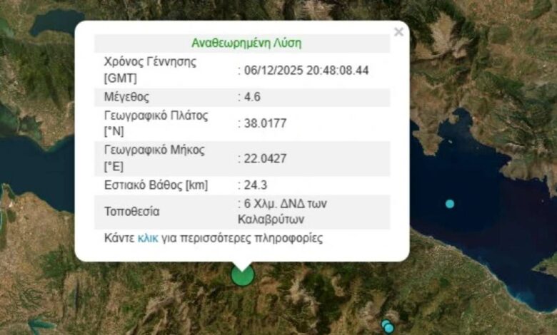Σεισμός 4,6 Ρίχτερ στα Καλάβρυτα – Αισθητός και σε Κόρινθο, Πάτρα