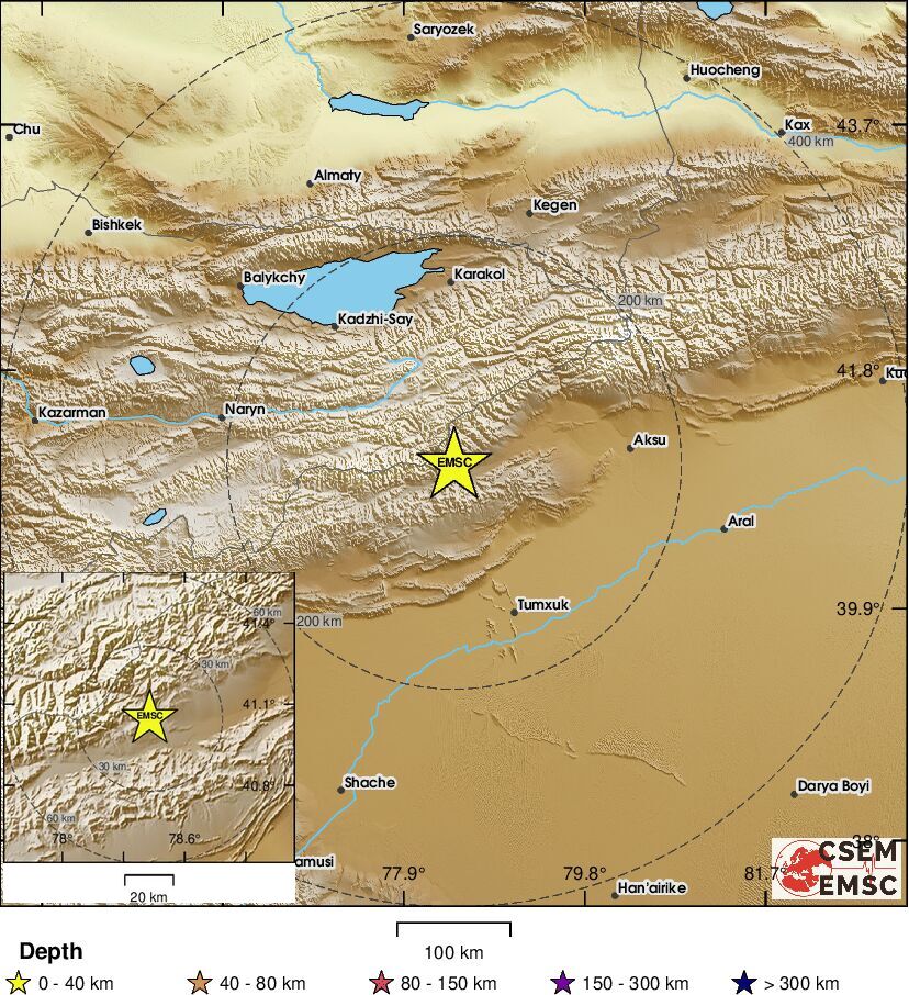 Συγκεκριμένα, ο σεισμός σημειώθηκε στη κομητεία Ακτσί, κοντά στα σύνορα με το Κιργιστάν.