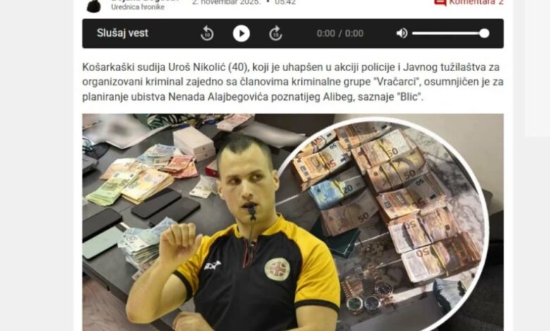Την ώρα που η Σερβία βιώνει τις τεράστιες διαδηλώσεις για τη συμπλήρωση ενός έτους από το τραγικό δυστύχημα στον σιδηροδρομικό σταθμό του Νόβι Σαντ, στο προσκήνιο έρχονται νέα στοιχεία για τη δράση της συμμορίας Βρατσάρτσι και τον ακριβή ρόλο που είχε σ’ αυτήν ο (πρώην πια) διαιτητής της Euroleague, Ούρος Νίκολιτς.