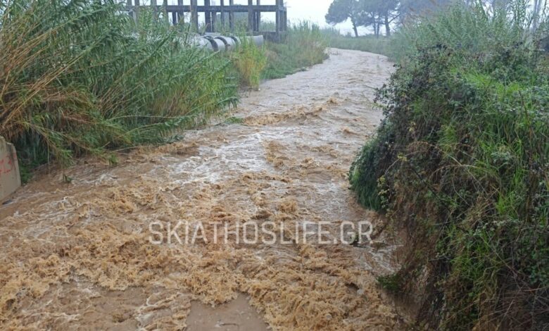 Σκιάθος: Ποτάμια οι δρόμοι από την κακοκαιρία – Σοβαρά προβλήματα στο οδικό δίκτυο του νησιού (Photos)