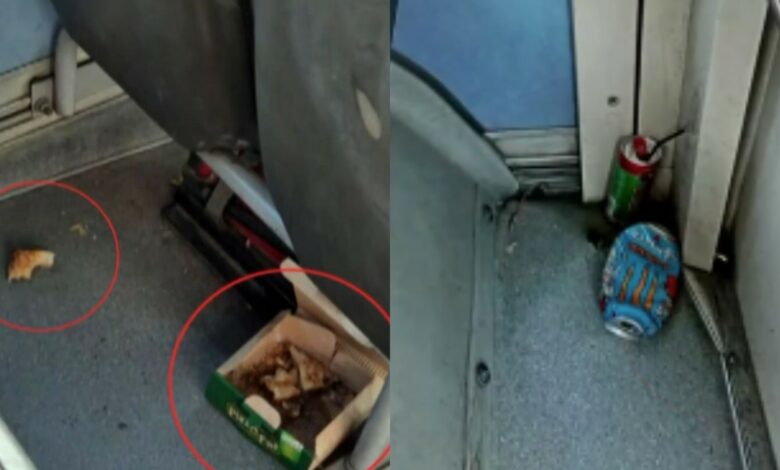 Πεταμένα φαγητά, σκόνη, μεταλλικά μπουκάλια κατέγραψε η κάμερα του ΣΚΑΪ στην αυτοψία, που πραγματοποίησε σε λεωφορεία και τρόλεϊ του ΟΣΥ.