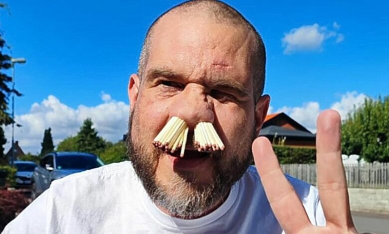 Έτσι κι εκείνος έβαλε έναν αριθμό ρεκόρ από… σπίρτα στη μύτη του.