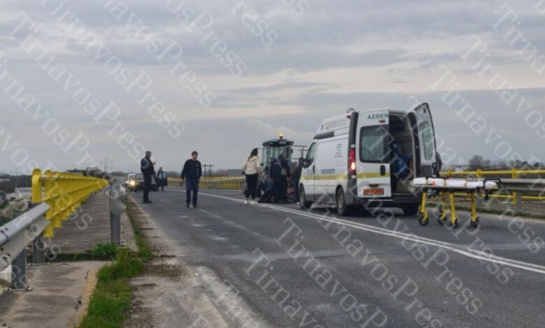 Σοβαρό τροχαίο ατύχημα στη νέα γέφυρα Τυρνάβου – Γυναίκα καταπλακώθηκε από τρακτέρ