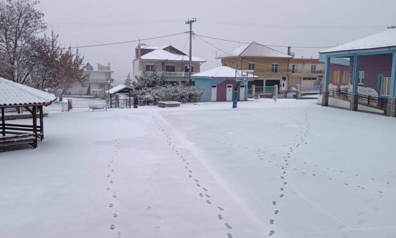 Χιονισμένο σκηνικό και στα Τρίκαλα Κορινθίας.