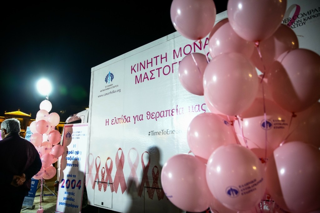 Στα ροζ «ντύθηκε» το δημαρχιακό μέγαρο της Αθήνας και η πλατεία Κοτζιά, σε μια κοινή πρωτοβουλία ευαισθητοποίησης του δήμου Αθηναίων και της Ελληνικής Αντικαρκινικής Εταιρείας, για τον καρκίνο του μαστού.