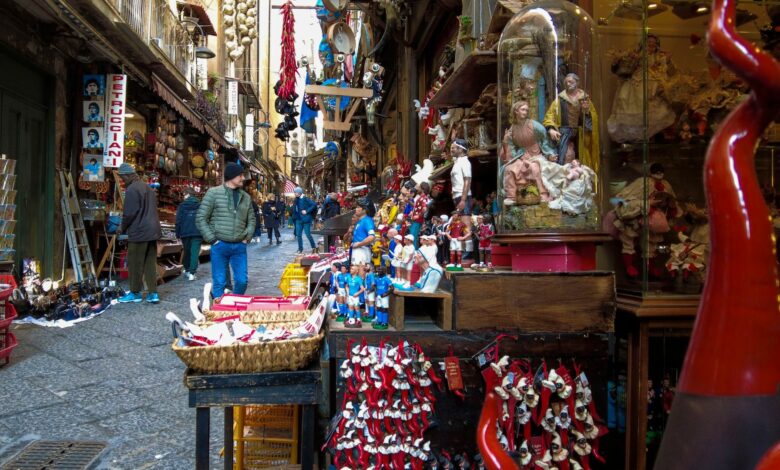 Λίγο πιο κάτω, στο στενό Via San Gregorio Armeno, πλήθη θαυμάζουν το έργο των τεχνιτών, που φτιάχνουν παραδοσιακές φιγούρες για τις φάτνες. Οι κάτοικοι της Νάπολης λένε ότι η πόλη έχει κατακλυστεί από καταστήματα που πουλούν φθηνά σουβενίρ, την ώρα που τα πιο ποιοτικά καταστήματα, με παραδοσιακά προϊόντα, αναγκάζονται να βάλουν «λουκέτο».