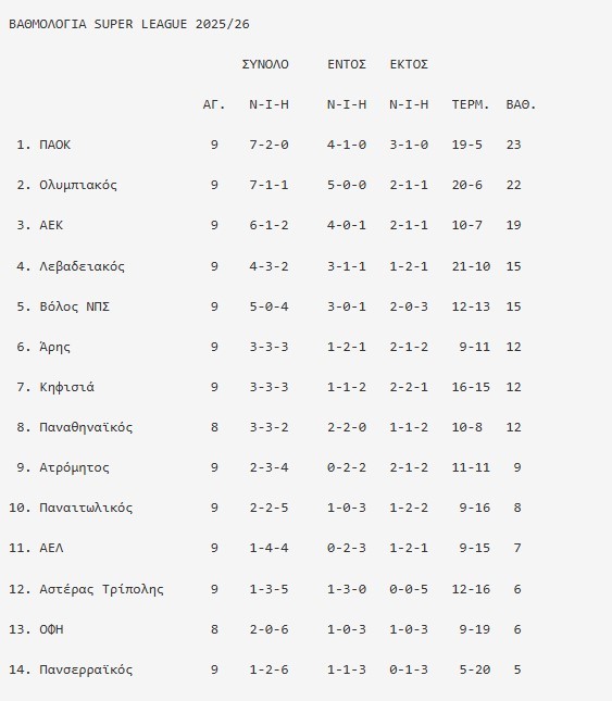 Αναλυτικά το πρόγραμμα της 10ης αγωνιστικής του πρωταθλήματος της Super League: