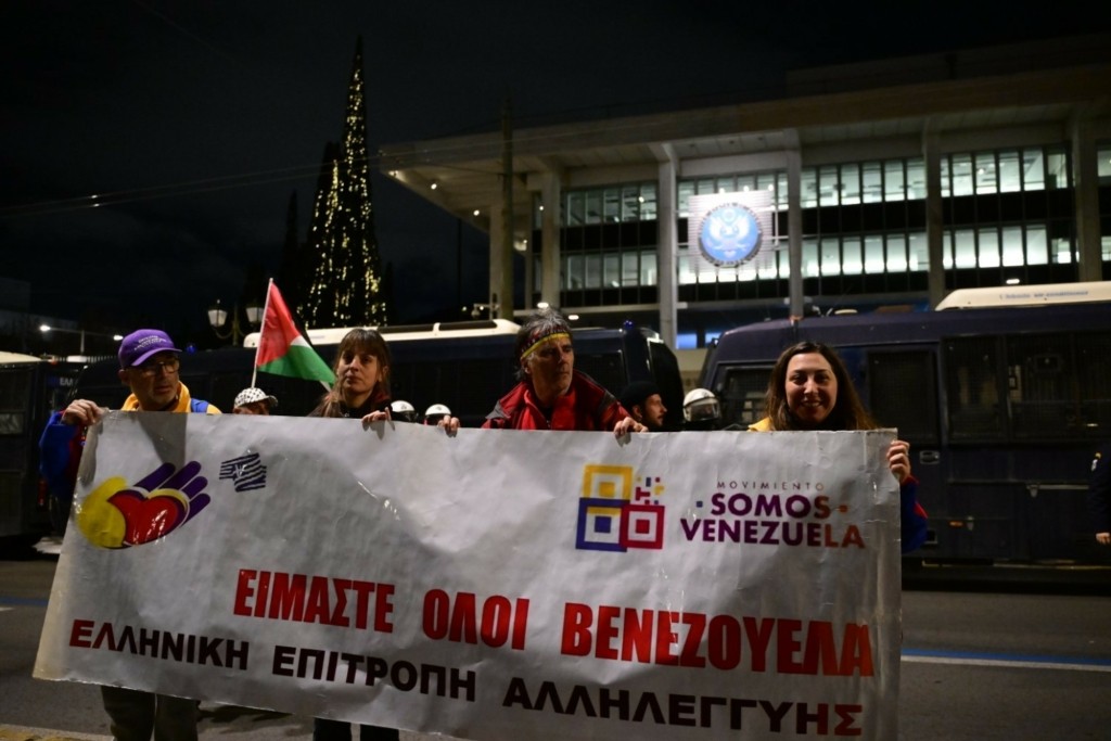 Νωρίτερα, σε συγκέντρωση αλληλεγγύης προς τον λαό της Βενεζουέλας κάλεσαν αριστερές και εργατικές οργανώσεις, μετά τις ραγδαίες εξελίξεις στη Λατινική Αμερική και τη σύλληψη του Νικολάς Μαδούρο.