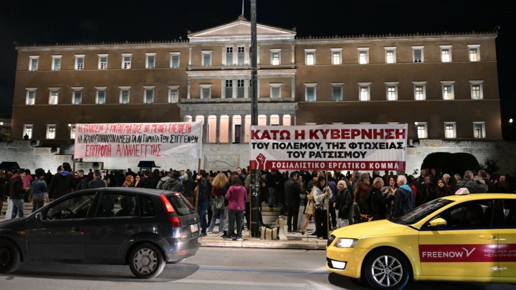 Δεκάδες πολίτες έχουν συγκεντρωθεί μπροστά από το μνημείο του Άγνωστου Στρατιώτη, διαδηλώνοντας κατά της τροπολογίας που απαγορεύει τις συναθροίσεις σε αυτό.