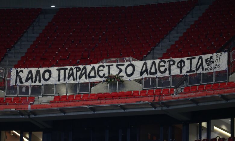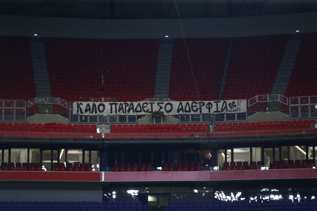 Στο σημείο, ωστόσο, που θα κάθονταν κανονικά οι οπαδοί της ομάδας, έχει κρεμαστεί ένα πανό, το οποίο γράφει «Καλό παράδεισο αδέρφια», στη μνήμη των αδικοχαμένων φιλάθλων του ΠΑΟΚ.