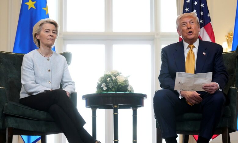 Νίκη για την Ουάσινγκτον, ήττα για τις Βρυξέλλες: σε αυτές τις λίγες λέξεις μπορούν να συνοψιστούν οι αντιδράσεις των Ευρωπαίων μετά τη συμφωνία στην οποία κατέληξαν ο Ντόναλντ Τραμπ και η Ούρσουλα φον ντερ Λάιεν για τις εμπορικές σχέσεις ΗΠΑ και ΕΕ.