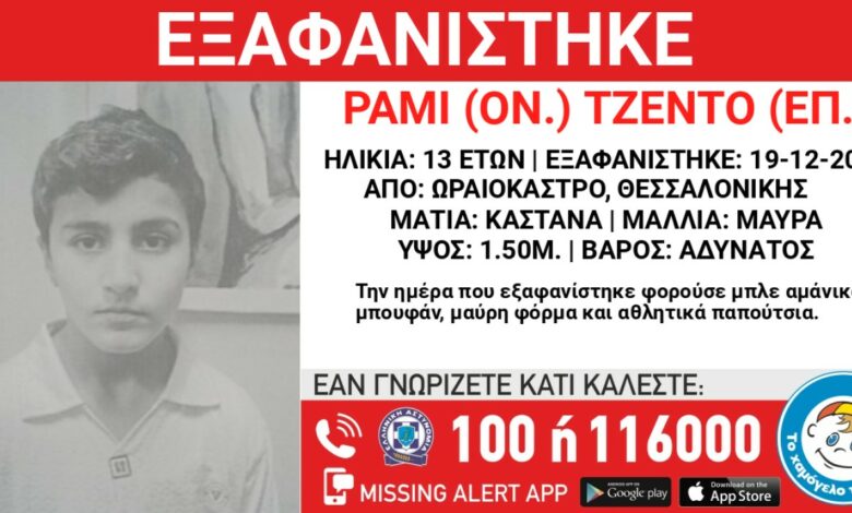 Συναγερμός για την εξαφάνιση 13χρονου στη Θεσσαλονίκη