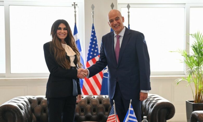Ο υπουργός Εθνικής Άμυνας Νίκος Δένδιας υποδέχθηκε σήμερα την πρέσβη των ΗΠΑ στην Αθήνα, Κίμπερλι Γκίλφοϊλ, στην πρώτη της επίσημη επίσκεψη στο υπουργείο Εθνικής Άμυνας.
