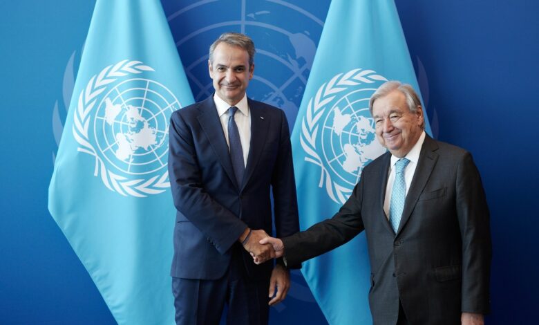 O πρωθυπουργός Κυριάκος Μητσοτάκης συναντήθηκε στο περιθώριο των εργασιών της 80ής Γενικής Συνέλευσης του ΟΗΕ με τον γενικό γραμματέα του ΟΗΕ Αντόνιο Γκουτέρες.