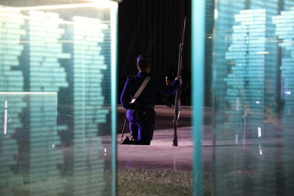Τα αποκαλυπτήρια γίνονται παρουσία του προέδρου της Βουλής, Νικήτα Κακλαμάνη, του πρωθυπουργού Κυριάκου Μητσοτάκη, του αντιπροέδρου της ΝΔ Κωστή Χατζηδάκη, υπουργού Άμυνας Νίκου Δένδια, του υπουργού Υγείας Άδωνι Γεωργιάδη, του υπουργού Οικονομικών Κυριάκου Πιερρακάκη, της υπουργού Εσωτερικών, Νίκης Κεραμέως, του υπουργού Πολιτικής Προστασίας Γιάννη Κεφαλογιάννη, του υπουργού Αθλητισμού Γιάννη Βρούτση, του Ευρωβουλευτή της ΝΔ Βαγέλλη Μεϊμαράκη, των πρώην υπουργών Μιλτιάδη Βαρβιτσιώτη και Μάκη Βορίδη, του Πάνου Καμμένου, του Ευάγγελου Βενιζέλου, της Άντζελας Γκερέκου, του περιφερειάρχη Αττική Νίκου Χαρδαλιά, του δημάρχου Αθηναίων Χάρη Δούκα και πρώην δημάρχουν Αθηναίων Κώστα Μπακογιάννη, του επιχειρηματία Ευάγγελου Μυτιληναίου, του γλύπτη Κώστα Βαρώτσου.