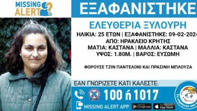 Συναγερμός σήμανε για την εξαφάνιση 25χρονης από το Ηράκλειο Κρήτης. Πρόκειται για την Ελευθερία Ξυλούρη τα ίχνη της οποίας χάθηκαν…