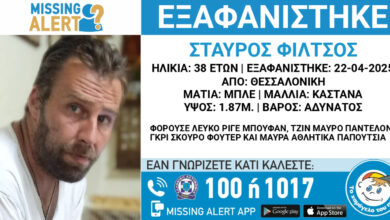 Συναγερμός έχει σημάνει στην περιοχή της Θεσσαλονίκης λόγω της εξαφάνισης ενός 38χρονου από την Τρίτη 22 Απριλίου. Το «Χαμόγελο του…