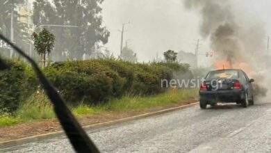 Λαμπάδιασε αυτοκίνητο στη λεωφόρο Βουλιαγμένης στο ρεύμα προς Γλυφάδα