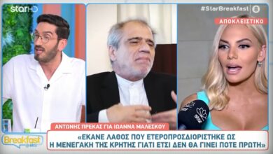 Ο Αντώνης Πρέκας για την Ιωάννα Μαλέσκου: «Όταν είσαι η Μενεγάκη της Κρήτης, δεν θα γίνεις ποτέ πρώτη»