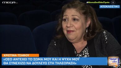 Στην κάμερα της εκπομπής «Ακόμα Δεν Είδες Τίποτα» και τον δημοσιογράφο Γιάννη Μαυρίδη μίλησε η Χριστίνα Τσάφου. Η γνωστή ηθοποιός…