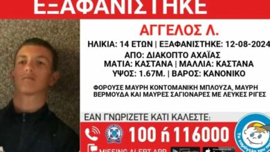 Συναγερμός σήμανε στις Αρχές για την εξαφάνιση 14χρονου από το Διακοπτό Αχαΐας. Πιο συγκεκριμένα, πρόκειται για τον Άγγελο ο οποίος…