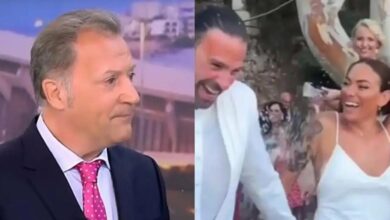 Ο Δημήτρης Οικονόμου έστειλε τις ευχές του στη συνάδελφό του Ευρυδίκη Βαλαβάνη, η οποία ανέβηκε τα σκαλιά της εκκλησίας με…