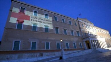 Με τα χρώματα του Ερυθρού Σταυρού φωταγωγήθηκε το Μέγαρο της Βουλής