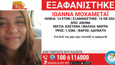 Συναγερμός έχει σημάνει στις αρχές για την εξαφάνιση της 14χρονης Ιωάννας Μοχαμεταϊ η οποία αγνοείται από την περιοχή της Αθήνας…