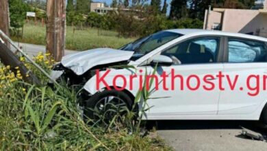 Κόρινθος: Σύγκρουση αυτοκινήτων – ΙΧ καρφώθηκε σε κολώνα