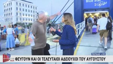 Στο λιμάνι του Πειραιά βρέθηκε σήμερα (20/08) νωρίς το πρωί η Αλεξάνδρα Μερακλίδη, προκειμένου να καταγράψει την αναχώρηση των ταξιδιωτών…