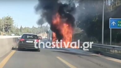 Στις φλόγες λεωφορείο του ΟΑΣΘ στον Περιφερειακό της Θεσσαλονίκης – Δείτε βίντεο