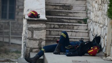 Φωτιά στην Αττική: Συγκλονίζει η εικόνα του πυροσβέστη μετά την ολονύχτια μάχη
