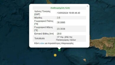 Σεισμός μεγέθους 3,7 Ρίχτερ σημειώθηκε νωρίς σήμερα (30/04) το πρωί ανοιχτά της Κρήτης. Ο σεισμός έγινε 57 χιλιόμετρα νοτιοδυτικά της…