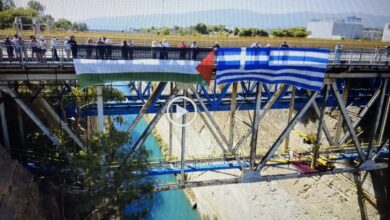 Ελληνική και Παλαιστινιακή σημαία αναρτήθηκαν στη Διώρυγα της Κορίνθου