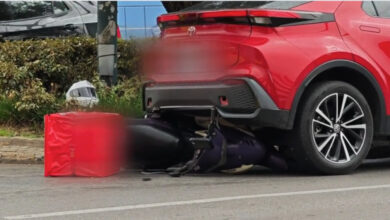 Μηχανάκι «καρφώθηκε» σε ΙΧ – Κλειστή μία λωρίδα της Βασιλέως Κωνσταντίνου
