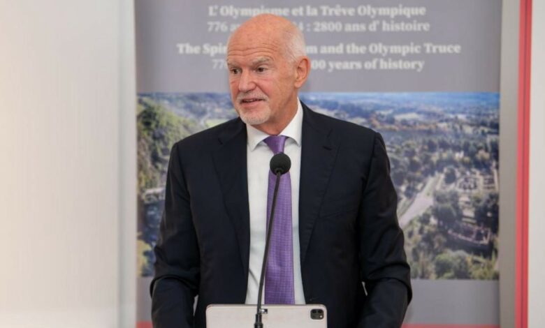 Ένα μέλλον όπου η ειρήνη δεν είναι εξαίρεση — αλλά κοινή, παγκόσμια προσδοκία. Σας ευχαριστώ — και είθε το πνεύμα της Ολυμπίας να μας καθοδηγεί», ανέφερε ο κ. Παπανδρέου στην ομιλία του.