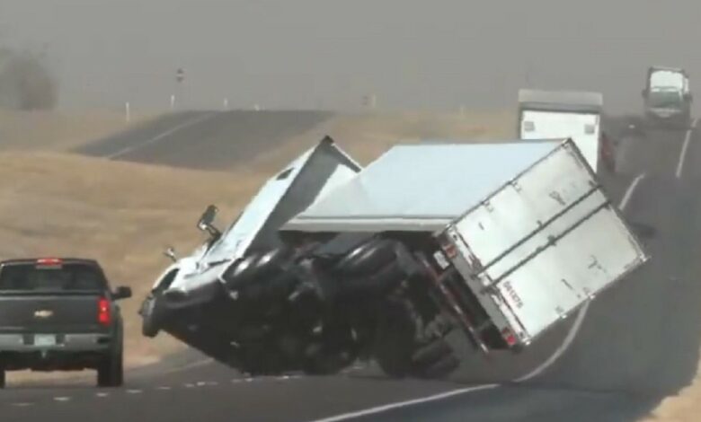 Τέξας: Θυελλώδεις άνεμοι αναποδογυρίζουν νταλίκα στη μέση του δρόμου (video)