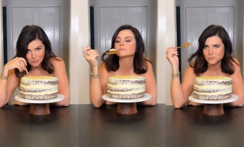 Η 51χρονη ηθοποιός εμφανίστηκε χωρίς ρούχα και απόλαυσε μια τούρτα καρότο, προκαλώντας μπαράζ αποθεωτικών σχολίων