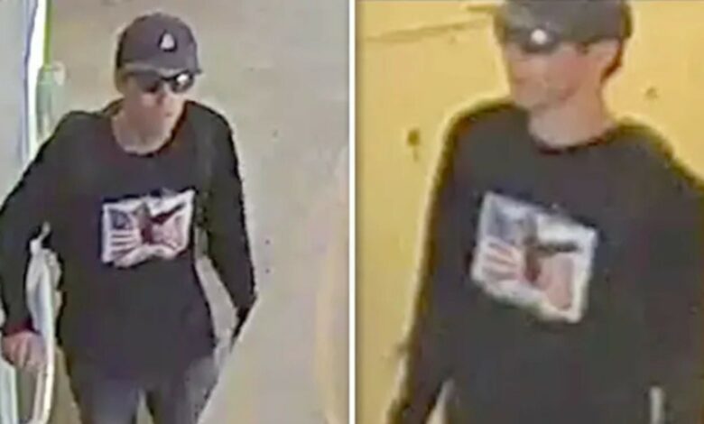 Δύο φωτογραφίες που δημοσιεύτηκαν στο X δείχνουν ένα άτομο με μαύρα γυαλιά ηλίου, καπέλο του μπέιζμπολ, μαύρη μπλούζα με μακριά μανίκια και τζιν.